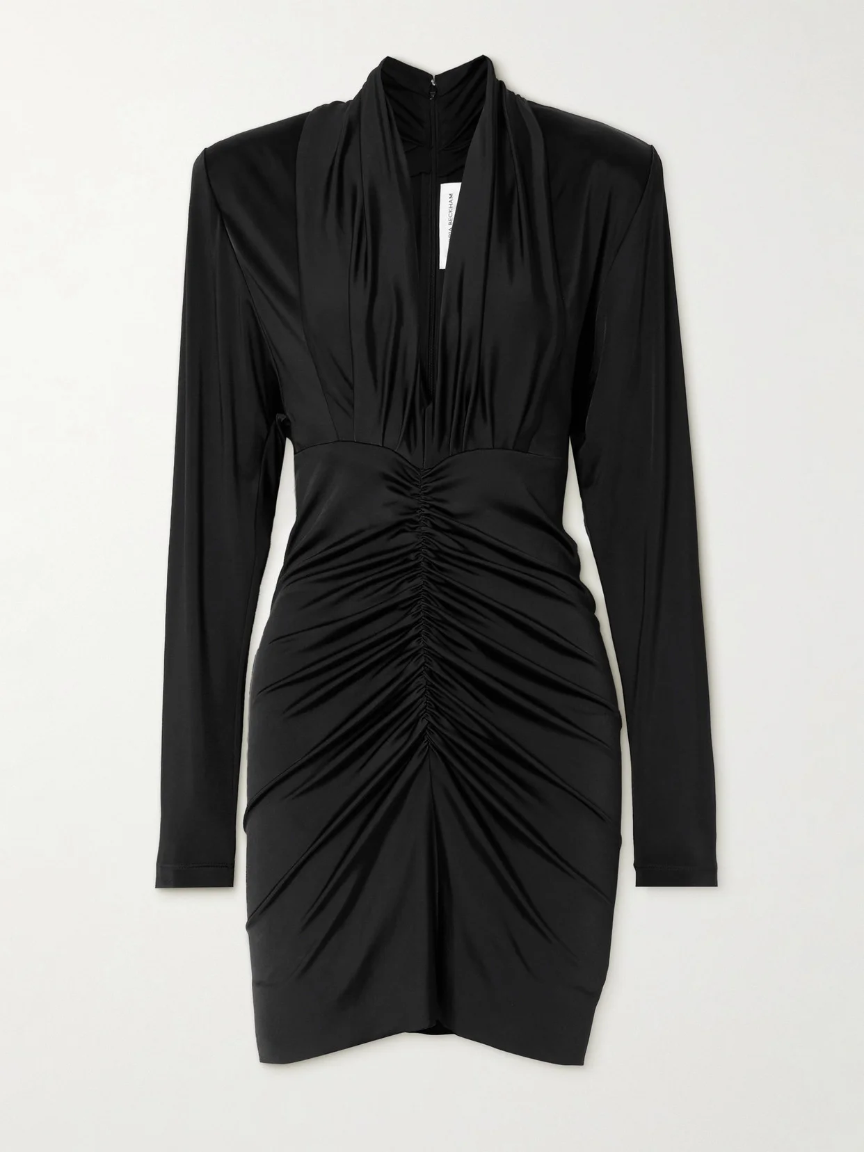 Victoria Beckham uses artful draping to complement your shape. This mini dress is made from form-fitting stretch-jersey with structured shoulders, a deep V-neckline and a ruched waist. Wear yours with point-toe pumps and glittering earrings.