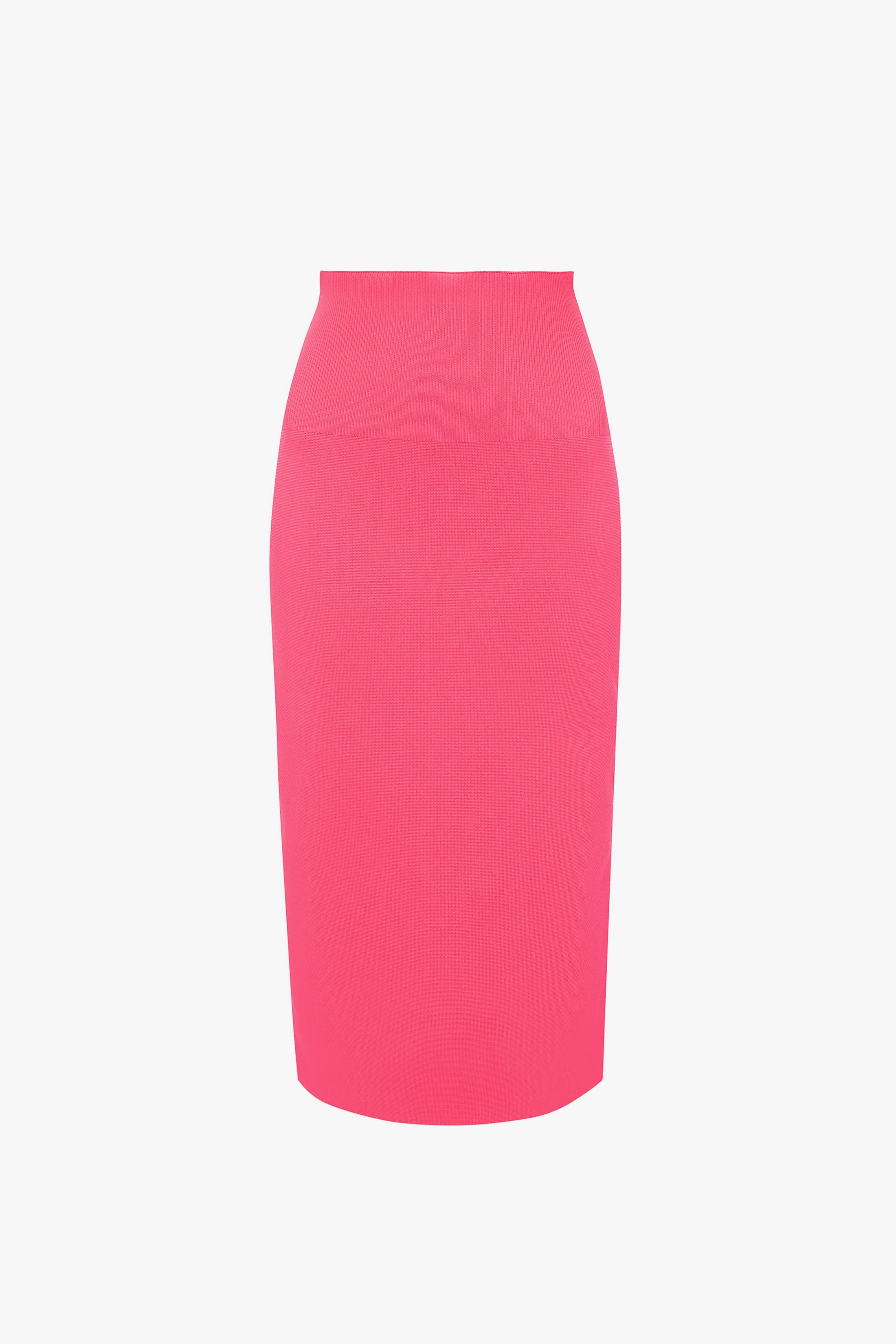 Crafted from ultra form-fitting woven compact knitwear, the VB Body Midi Skirt in vibrant neon pink adds an energetic point of difference to your summer wardrobe. A back slit and pointelle detailing adds refined polish.Styled with the and the Product Details - Compact Viscose Fabrication - Fits True To Size, Take Your Regular Size - 66% Viscose 21% Elastane 13% Polyester - Skirt length: 80cm - Centre back split: 26.5cm