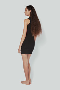 In a lightweight knitted fabrication, the form-fitting Mini Dress in black is rooted in sophisticated ease. The sleeve detailing adds a pretty punctuation to the sleek silhouette, while shorter hemline serves as sophisticated but subtly sexy approach to summer dressing. Styled with the Destiny Sandal Product Details - Compact Viscose Fabrication - Fits True To Size, Take Your Regular Size - 66% Viscose 21% Elastane 13% Polyester - Front length: 85cm