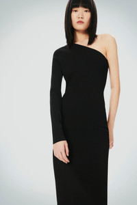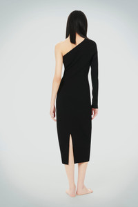 Rendered in unversally flattering black and crafted from our tightest woven compact knitwear fabrication, the VB Body One Shoulder Midi Dress is rooted in modernity. Expertly constructed and meticulously designed, it has a form-fitting, one-shoulder shape that flatters the body. A high back slit allows for ease of movement. Styled with the the Destiny Sandal, Squared Toe Platform Sandal and the Gold Chain Choker Product Details - Compact Viscose Fabrication - Fits True To Size, Take Your Regular Size - Front length (Shoulder to Hemline): 118.5cm - Sleeve length 65cm - Centre back split - Made in Hong Kong - Main: 73% Viscose 15% Polyester 12% Elastane