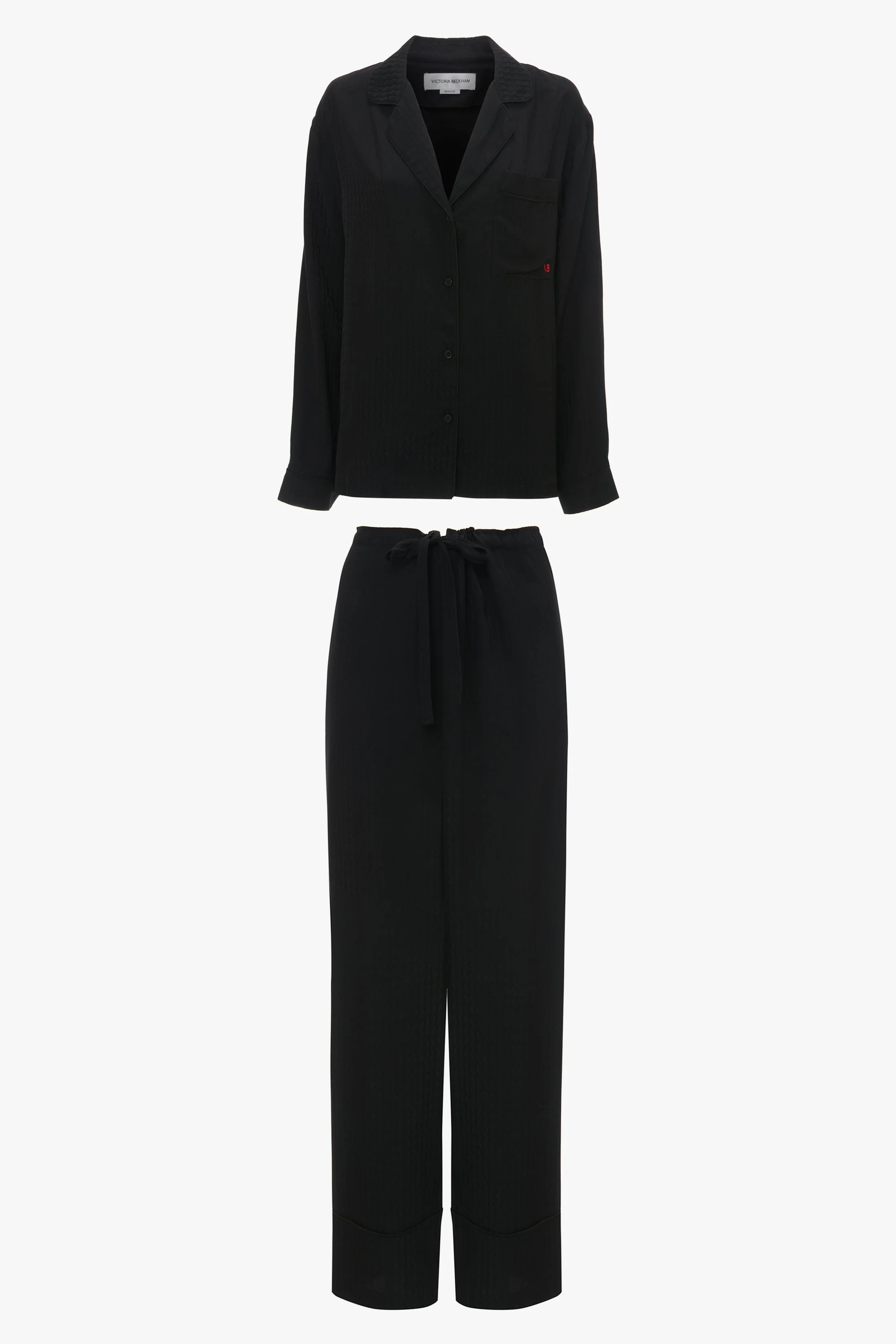 The Pyjama Sleep Set is an elevated sleepwear and loungewear option. An all-over VB house monogram print in Black imbues the co-ord with its distinct personality, while the luxurious fabrication ensures comfort and ease of movement. The set comes with a tote bag and eye mask in a matching print. Size & Fit - Midi length: 83cm - Fits true to size, take your regular size - The model height is 178cm and is wearing a size 6 Product Details - Soft silk fabrication - Tote bag and eye mask included - 65% Viscose 35% Modal - Dry clean only - Made In Portugal