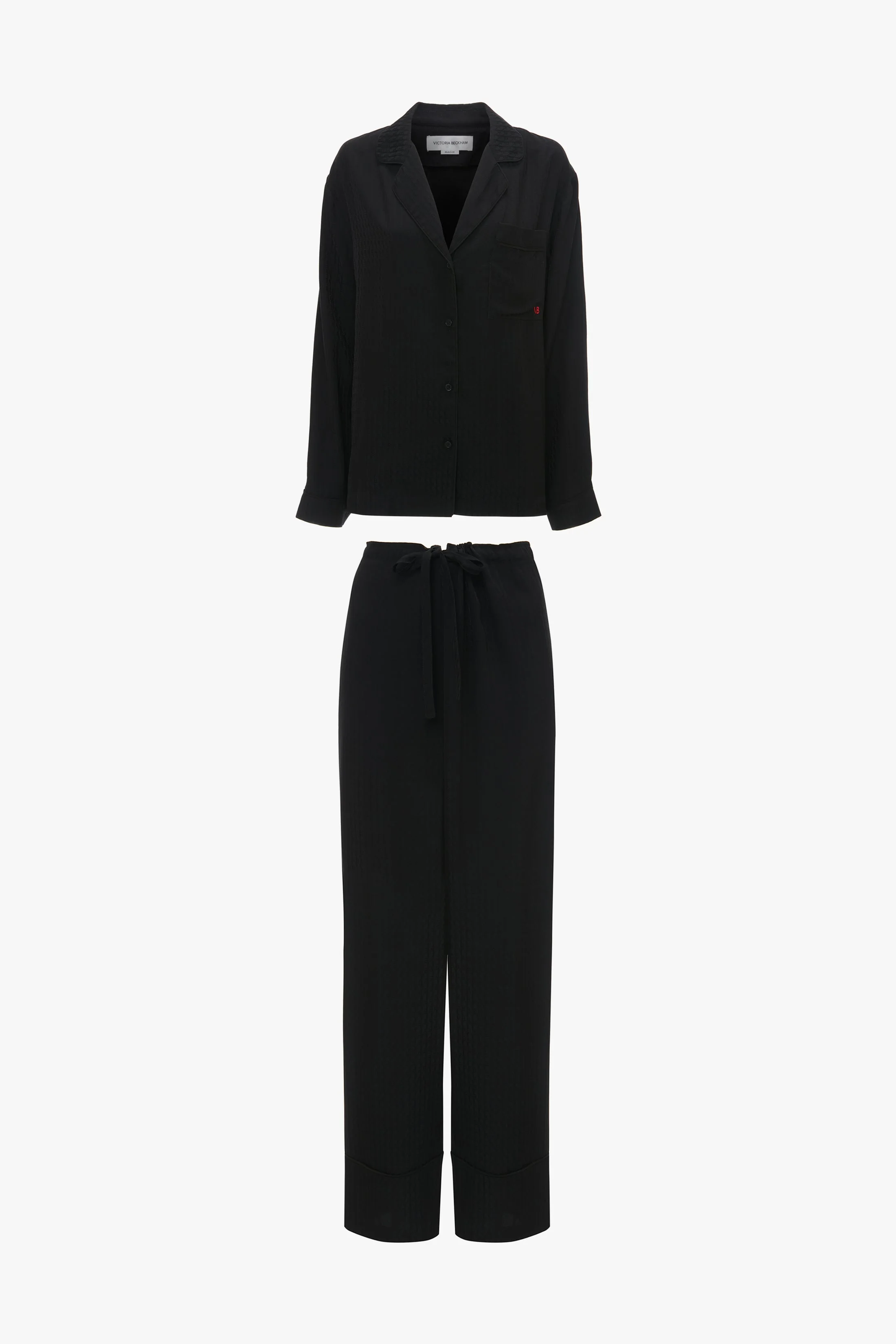 - Soft silk fabrication - Midi length: 83cm - Tote bag and eye mask included - 65% Viscose 35% Modal - Dry clean only - Made In Portugal The Pyjama Sleep Set is an elevated sleepwear and loungewear option. An all-over VB house monogram print in Black imbues the co-ord with its distinct personality, while the luxurious fabrication ensures comfort and ease of movement. The set comes with a tote bag and eye mask in a matching print. SIZE & FIT - The model height is 178cm and is wearing a size S - Fits true to size, take your regular size