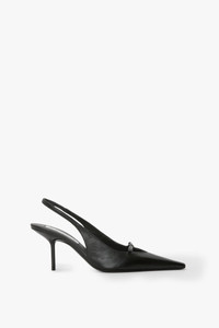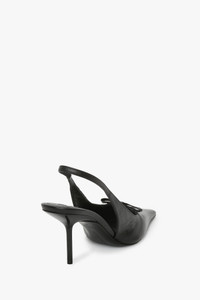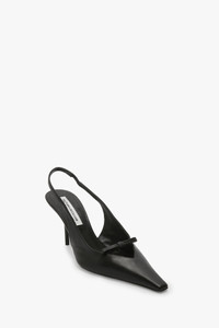 A charming bow detail adds a feminine finish to the Stiletto Heel Bow Detail Slingback. Crafted in Italy from smooth black kidskin leather with a black lacquered 75mm heel for a polished aesthetic, it has a distinctive pinched, closed-toe design that is both elongating and elegant. Leather lining and a padded insock complete the look. Size & Fit - 75mm stiletto heel - Fits true to size, take your regular size Product Details - Pinched, elongated closed toe shape - Bow detail - Black lacquered heel - Kidskin upper - Leather lining - Padded in-sock for added comfort - 100% Leather - Made in Italy