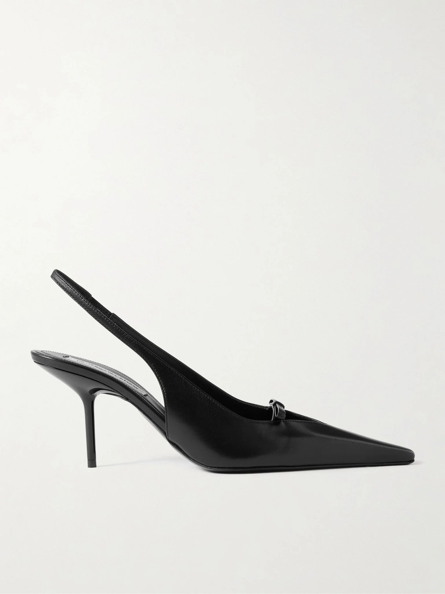 Elegant in their simplicity, Victoria Beckham's 'Sloan' slingback pumps are destined to be a go-to in your wardrobe. They've been made in Italy from soft leather and have pointed toes framed with a neat bow. Wear yours with everything from tailoring to off-duty denim. Small to size. See Size & Fit notes. Size & Fit - Fits small to size, take a full size larger than normal - Only available in full sizes, go up to the nearest whole size if you take a half size - Italian sizing Details & Care - Heel measures approximately 75mm/ 3 inches - Black leather (Goat) - Elasticated slingback strap