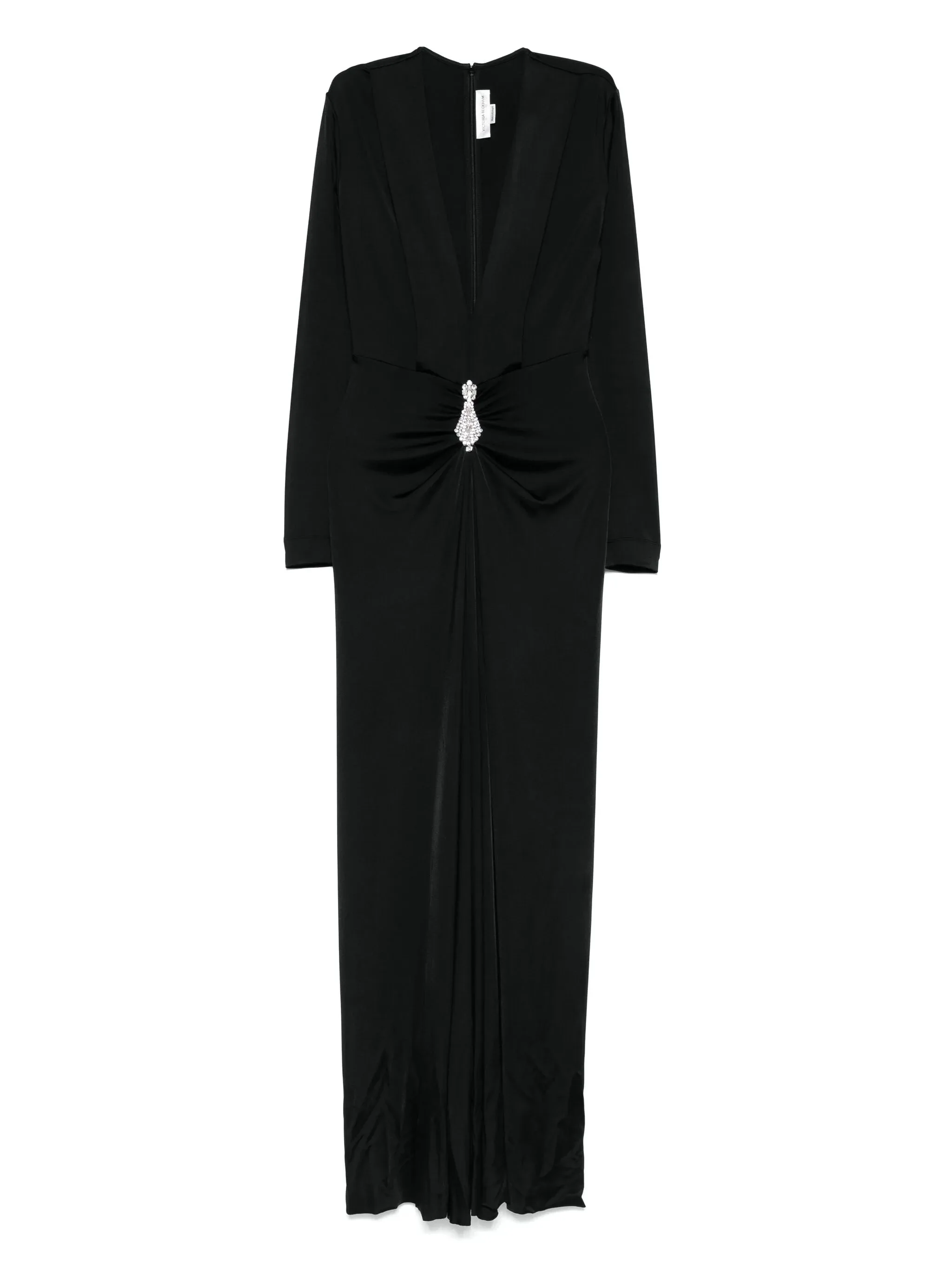 black concealed rear zip fastening brooch detail plunging V-neck straight hem - Color: BLACK - Made in: Portugal - Designer Style ID: 1325WDR006596A BLACK Composition and care Silk: 5.0%, Polyester: 5.0%, Viscose: 96.0%, Brass: 20.0%, Metallized Polyester : 10.0%, Glass: 60.0%, Elastane: 4.0%