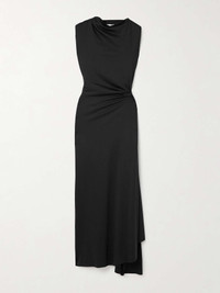 EDITORS'NOTES The draped panel and gathered side elevates the simple shape of Victoria Beckham’s midi dress to something much more impactful. It’s made from a slim fit from crepe and has an elegant cowl neckline. SIZE & FIT - Fits true to size, however those who are between sizes should take the smaller size - Designed for a slim fit - Mid-weight, slightly stretchy fabric - UK sizing DETAILS & CARE - Black crepe - Zip fastening along back - 90% polyester, 10% elastane