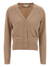 stepped-hem ribbed cardigan Highlights - Beige - V-neck - Front button closure - Front patch pockets - Side splits Imported Composition Wool 70%, Cashmere 30% Washing instructions Read Manufacturer Guidelines