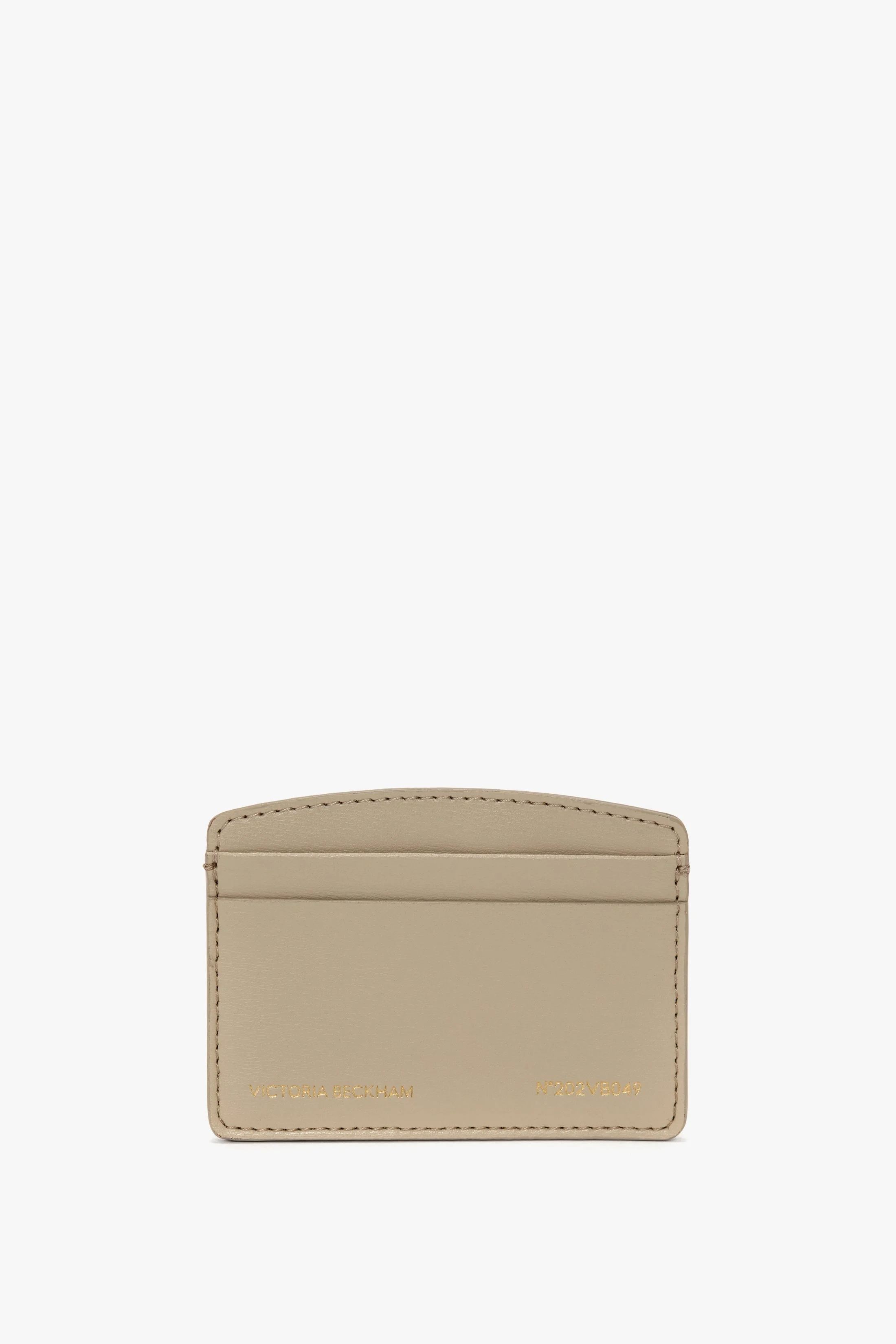 Exquisitely crafted from a textured grained calf leather and presented exclusively in classic Taupe, the Victoria Card Holder is a subtly sophisticated addition to the house’s leather goods edit. It has a single internal compartment and four card slots, with a Victoria Beckham stamp and serial number completing the look. Size & Fit - Width - 10cm Height 7.3cm Depth - 3mm Product Details - Features one internal compartment and four card slots - Victoria Beckham stamp and serial number stamp - 100% Calf leather - On calf leathers, regularly apply a small amount of nourishing cream and buff gently using a cloth - Made in Italy