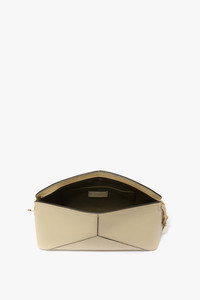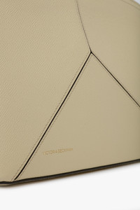 This textured calf leather Victoria Clutch is a favourite of Victoria’s. Presented in Ivory, it has a sleek silhouette with structured body and softly rounded top for a contemporary blend of masculine and feminine. Design features include an engraved B zip puller and padlock closure, snap button to hold the zip tape in place, textile lining and a flat internal pocket. The house’s signature design feature of leather panels stitched to form a V shape adds visual interest, while the discretely stamped address of Victoria’s London studio (N.202) followed by a unique serial number elevates the look further. Size & Fit - Width: 28cm, Height: 18.7cm, Depth: 9cm Product Details - Structured with a curved shape top - Flat pocket in the main inner compartment - Snap button on the side to hold the zip tale in place - Engraved VB branded padlock on zip puller and closure - 100% Leather - Made in Italy
