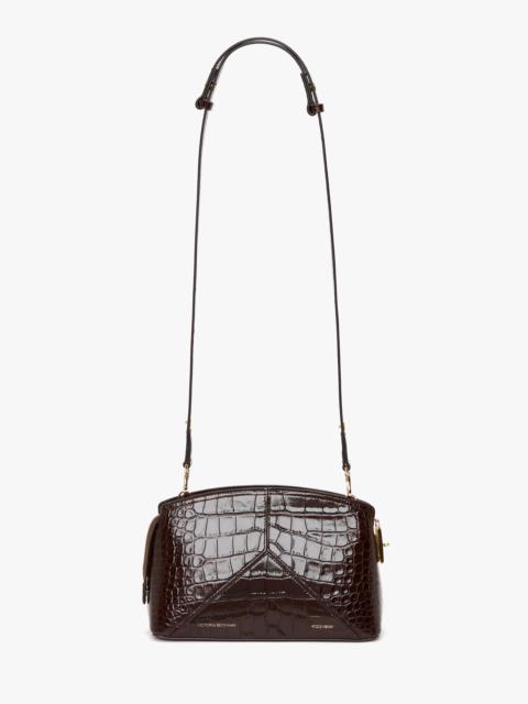 First introduced for SS24 and a personal favourite of Victoria’s, the Victoria Crossbody Bag is presented in croc embossed leather for the new season. With its structured silhouette and elegant curved top, it merges masculine and feminine effortlessly, while an adjustable and removable strap allows for versatile styling as a shoulder or crossbody. Leather panels stitched to form the house’s signature V shape add a refined point of difference complemented by an engraved B zip puller, padlock closure and signature gold branding. It is finished with the discretely stamped address of Victoria’s London studio (N.202) followed by a unique serial number. Product Details - Engraved B zip puller and padlock closure, with mechanism to keep it in place - Snap button on the side to hold the zip tape in place - Leather panels are cut and stitched to form a V shape - Smart strap with snap buttons that easily allow to change the length of the strap, so the bag can be worn as a shoulder or as a cross body. Strap is also removable - Flat pocket inside the main compartment to store smaller items securely - Leather lining - Croc embossed leather - Dimensions: Height: 16cm Width: 25cm Depth: 8cmDrop: 54.5cm - longer length. Drop: 29 - Shortest length - 100% Calf leather - On calf leathers, regularly apply a small amount of nourishing cream and buff gently using a cloth - Made in Italy