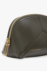 An everyday accessory is elevated with the house’s signature sophistication and attention to detail. The Victoria Mini Travel Pouch is crafted from a smooth, shiny calf leather, lined in hard-wearing canvas and presented in Dark Olive. Distinctive design details include V-stitched panels and a Victoria Beckham stamp and serial number. A small internal flat pocket brings added functionality. Size & Fit - Height 11.5cm, Width 17.5cm, Depth 8.5cm Product Details - Zip closure with signature B puller - Canvas lining - 100% Leather - Wipe clean with a soft, dry cloth - Made in Italy