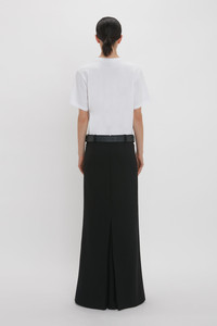 Luxury T-shirts are a house signature. Cut from 100% organic cotton for a tactile finish, this Victoria Tee embraces the brand’s signature relaxed but polished silhouette. Presented in crisp White, it is an elevated wardrobe essential. Styled with the Floor-Length Box Pleat Skirt In Black & Jumbo Frame Belt Product Details - Organic cotton fabrication - Classic Victoria fit - VB branding on sleeve - Fits true to size, take your regular size - The model height is 178cm and is wearing a size S - 100% Organic Cotton - Machine wash at 30C - Made In Portugal