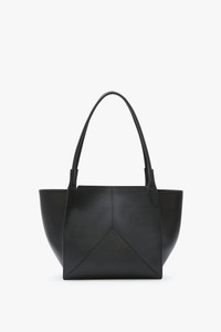 - Tonal suede lining - Internal flat pocket - 100% Leather - Wipe clean with a soft, dry cloth - Made in Italy A diminutive alternative to the house’s Victoria Tote, the Victoria Tote Bag in Black leather is crafted in Italy from smooth calf leather and designed with an unstructured silhouette and minimal hardware. Discreetly decorative V-stitched panels reflect the house’s signature restraint, while a tonal suede lining adds a tactile finishing touch. An internal flat pocket ensures secure storage. SIZE & FIT - Height 33cm, Width 31.5cm, Depth 14cm, Drop With Strap 28cm