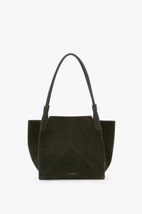 A diminutive version of the Victoria Tote, the Victoria Tote in Dark Olive suede has the same unstructured silhouette, simple lines and discreetly decorative V-stitched panels. Crafted in Italy, it is finished with tonal suede lining and an internal flat pocket. Understated but sophisticated, it is an ideal accessory for everyday wear. Size & Fit - Height 33cm, Width 31.5cm, Depth 14cm, Drop With Strap 28cm Product Details - Suede, 100% leather - Tonal suede lining - Internal flat pocket - 100% Leather - To clean, gently brush off any loose dirt with a soft brush, avoid brushing too hard - Made in Italy