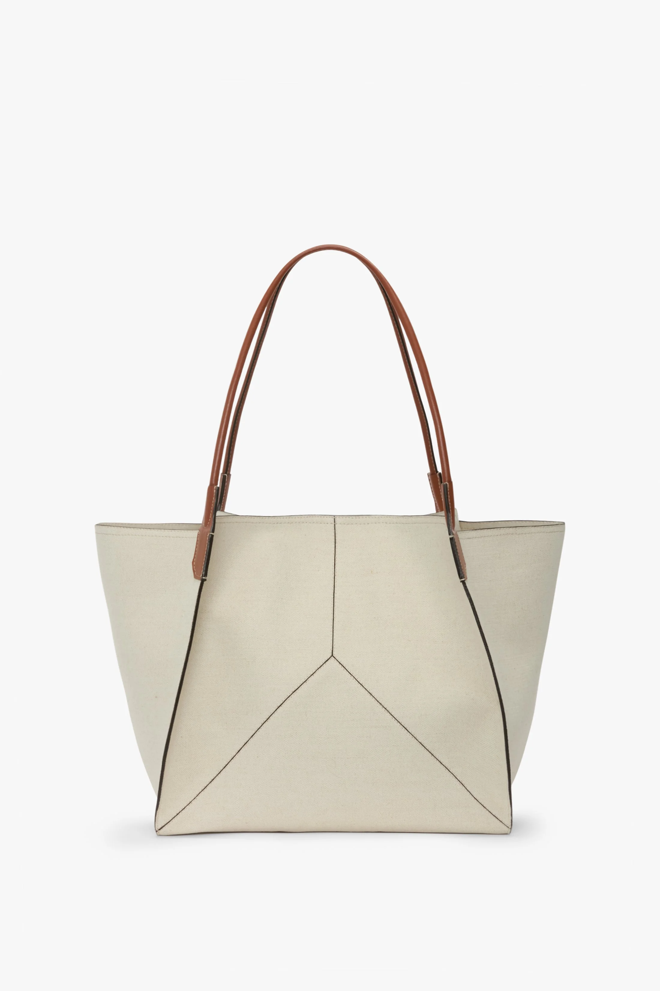 New to the Victoria family of leather goods, the Victoria Tote now comes with a canvas body in Ivory and contrasting shiny calf strap in Tan. Defined by clean lines and discreet V stitched panels, it expresses the house’s contemporary design language. Featuring signature gold branding, including a Victoria Beckham logo and unique serial code, the Victoria Canvas Tote is finished with a textile lining and an internal flat leather pocket. Size & Fit - Height: 38cm, Width: 48cm , Depth: 23cm, Drop With Strap: 28cm - Fits: Up to 16” laptop, A4 documents, iPhone Pro Max Product Details - Canvas body with shiny calf strap - Textile lining - Internal flat leather pocket - Features our signature gold branding with VB logo and a unique code - Canvas - Made in Italy