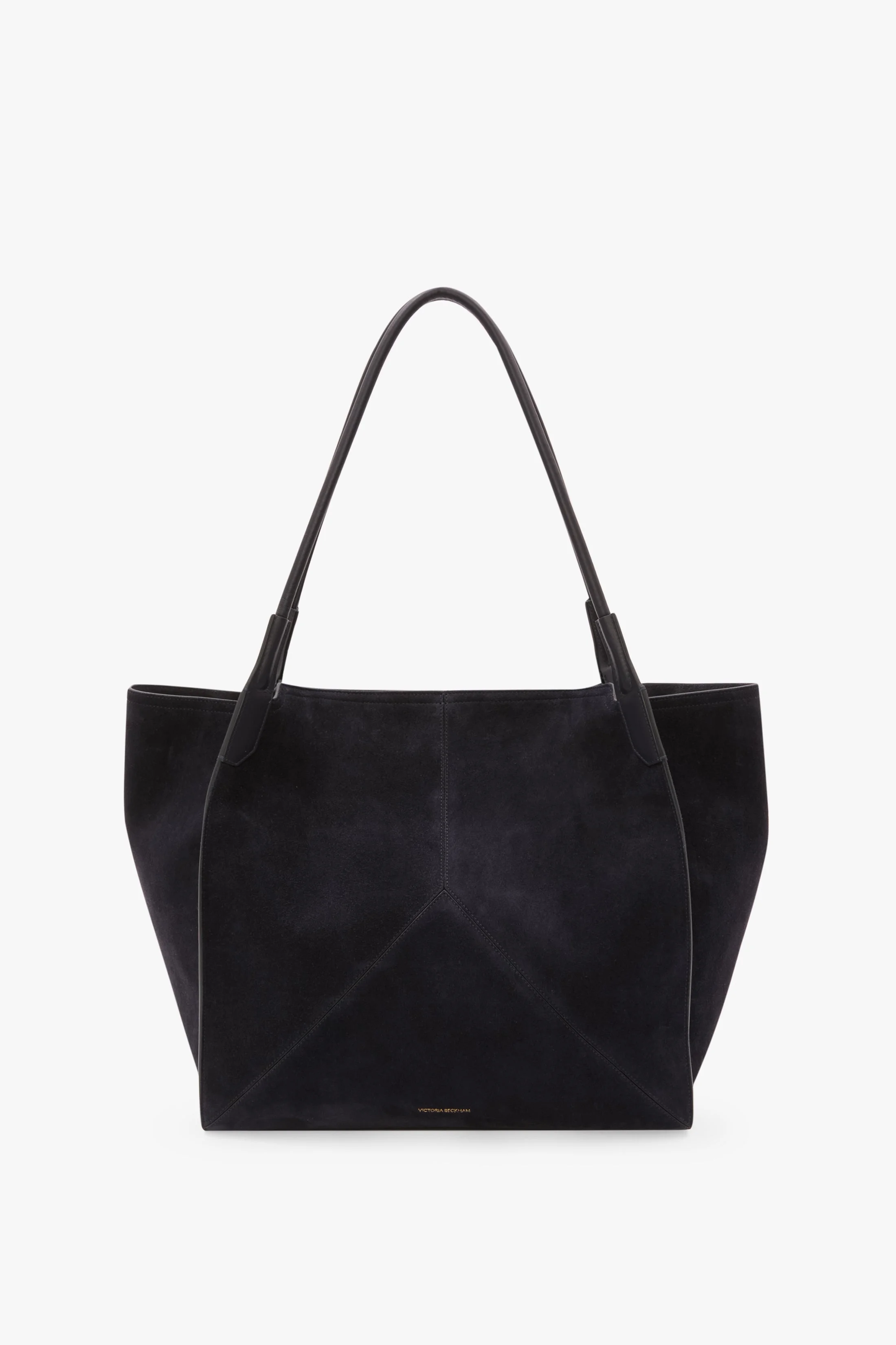 Size & Fit - Height: 38cm, Width: 48cm, Depth: 23cm - Strap: 28cm - Tonal suede lining - Internal flat pocket - Suede, 100% leather - Product Care: Gently brush off any loose dirt with a soft brush, or wipe the entire surface with a clean, damp cloth. Avoid brushing too hard. Do not apply any leather conditioner or polish, as this may discolour the suede and alter its soft texture. - Made in Italy An unstructured silhouette, simple lines and discreetly decorative V stitched panels define the Victoria Tote. Crafted in Italy from soft calf suede leather with tonal suede lining, it has an internal flat pocket and signature gold branding, including a Victoria Beckham logo and unique serial code. Presented in rich Navy, it expresses the house’s contemporary design language.