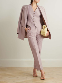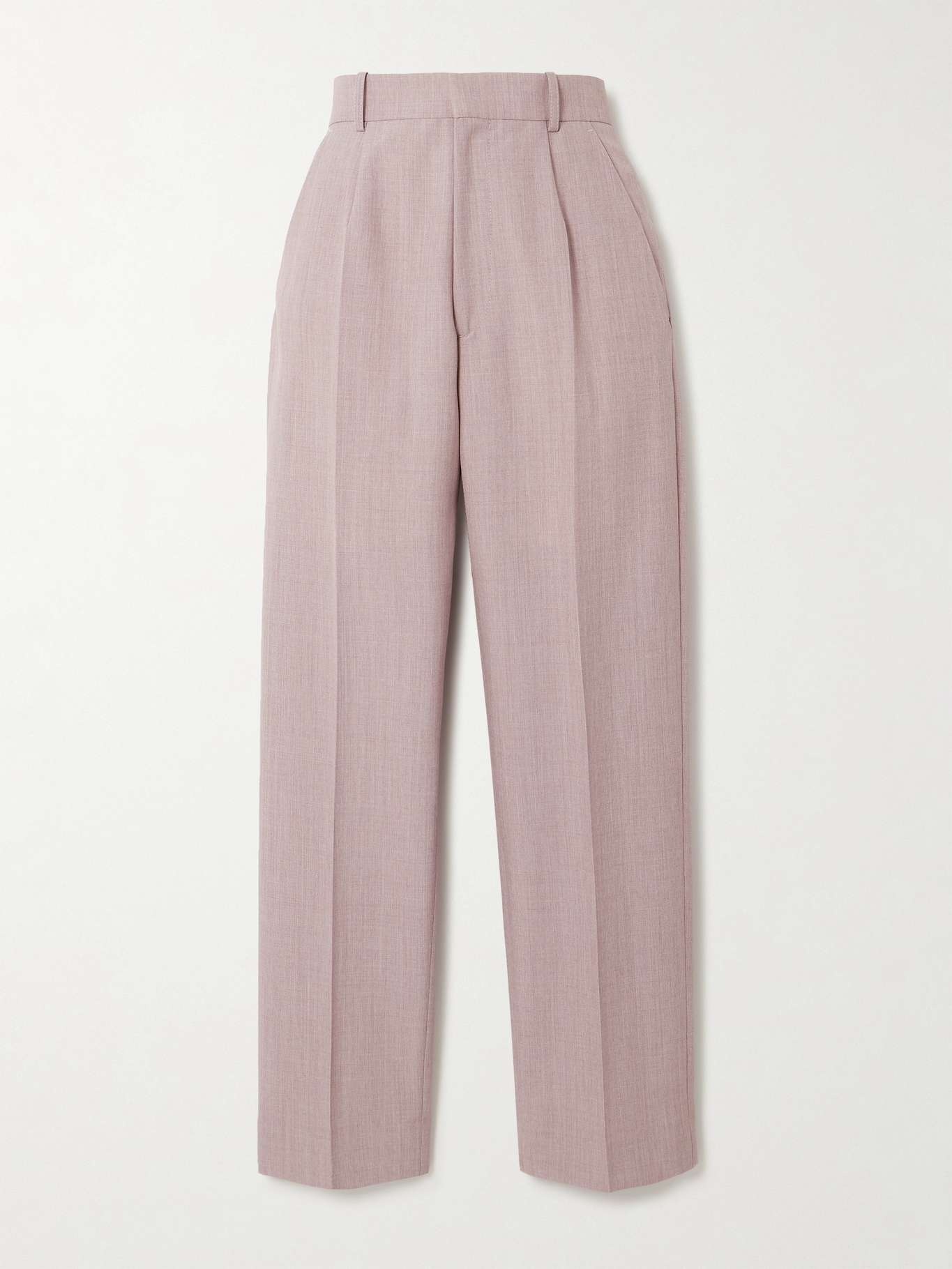EDITORS'NOTES Victoria Beckham's collections are filled with versatile staples that can effortlessly be dressed up or down for any occasion. A case in point: these pants are expertly tailored to sit high on the waist and have tapered legs defined by gentle pleats. The blush shade will look particularly striking with a white blouse or knit. SIZE & FIT - Fits true to size, take your normal size - High-rise, cut for a slim fit, tapered at the hem - Mid-weight, non-stretchy fabric - Model is 177cm/ 5'10" and is wearing a UK 8 DETAILS & CARE - Blush polyester and wool-blend - Concealed button and zip fastening at front - 62% polyester, 38% wool; lining: 70% cotton, 30% polyamide - Dry clean - Designer color: Heather
