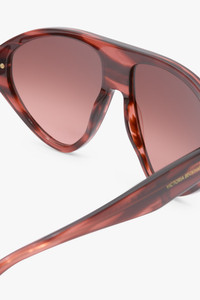 With a bold silhouette, the Visor Hinge-Detail Sunglasses make a confident statement. Crafted in Italy from acetate and presented in distinctive Striped Wine, they have a category 3 lens protection, a visor hinge and a Victoria Beckham logo at the temple. Size & Fit - Lens: 56mm, Bridge: 15mm, Temple: 140mm Product Details - 100% Acetate - Wipe clean with a soft, dry cloth - Made in Italy - Visor hinge style featuring Victoria Beckham logo on temple