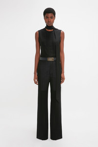 The classic black trouser is reimagined for SS24 in a breathable featherweight wool. Cut with a straight leg and flat front waistband for a streamlined silhouette, these wear-anywhere trousers have a single patch pocket at the back and contrasting flap pocket with complementary white trim. Styled with the Sleeveless Tie Neck Top and Jumbo Frame Belt Product Details - Featherweight wool - Flat front waistband - Back elasticated waistband - Back pocket detail - Front fly feature - Outside leg: 113cm - Fits true to size, take your regular size - Main: 80% Viscose 20% Virgin Wool - Pockets: 70% Cotton 30% Polyamide - Dry Clean Only - Made in Lithuania