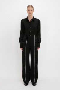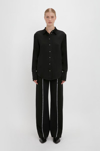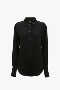 This season, masculine shirting is imaginatively reworked at Victoria Beckham. A waistcoat-shirt hybrid, this piece represents the collection’s experimental approach to dressing up. Mother-of-pearl buttons and a raised back hemline add a feminine punctuation to the boyish silhouette. Product Details - Crepe Back Satin Fabrication - Frontal button closure - Faux mother of pearl buttons - Rear back tab with adjustable buckle - Fits true to size, take your regular size - Buttoned cuff fastenings - The model height is 180cm and is wearing a size 6 - Front Length (Centre-front Neck Point To Hem): 72.5cm - Main: 71% Acetate 29% Viscose - Specialised Dry Clean Only - Made in Portugal