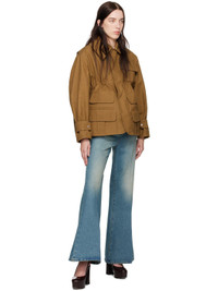 Wide-leg non-stretch denim jeans. Whiskering and fading throughout. · Garment-dyed · High-rise · Belt loops · Five-pocket styling · Zip-fly · Central creases at front and back · Leather logo patch at back waistband Supplier color: Tinted blue wash Body: 100% cotton. Lining: 65% polyester, 35% cotton. Trim: 100% leather. Made in Italy 242784F069004