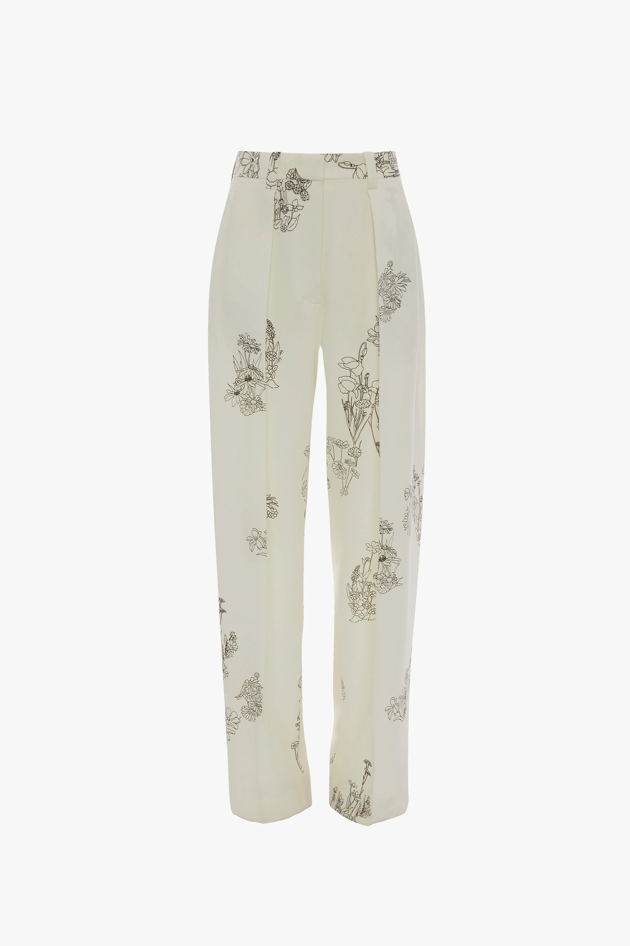 Relaxed but refined, the Wide Leg Trouser comes in an attractive Black/Off White print. A high-rise, wide-leg cut and front leg pleats create a flattering silhouette, while side pockets and a back jet pocket keep the look sleek and sophisticated. Product Details - Printed sable cady trouser - Wide leg - Belt loops - Zip fly with double hook & bar closure - Front leg pleats - Side pockets - Back jet pockets - 100% Viscose - Made in Portugal