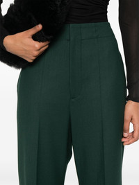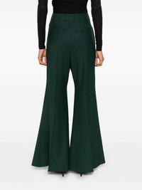 wide-leg trousers Highlights - Forest green - Twill weave - Wide leg - Concealed front button, hook and zip fastening - Two side inset pockets - Pressed crease - Two rear welt pockets Imported Composition Outer: Polyester 53%, Virgin Wool 43%, Elastane 4% Lining: Cotton 70%, Polyamide 30% SIZE & FIT Model measurements Height 5 ft 10 in(1.77 m) Bust/Chest 33.07 in(84 cm) Hips 37 in(94 cm) Waist 24.8 in(63 cm) FittingInformation Designed with a flared hem, these trousers allow for a close fit at the waist with a slim fit over the leg and widening towards the hem Made from a midweight stretch fabric, this piece offers elasticity and flexibility when worn
