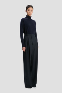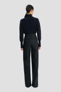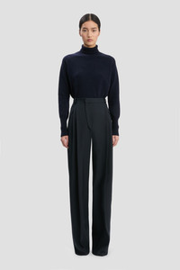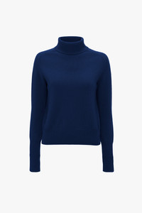 Created in an endlessly versatile shade of Navy, this lambswool polo neck has a saddle shoulder design and contrasting ribbed neck, which can be folded over or worn upright for versatile styling options. A contrasting embroidered Victoria Beckham monogram adds a discrete design detail. Product Details - Saddle shoulder design - High neckline complete with ribbed hemline - VB monogram embroidery - Made in Turkey