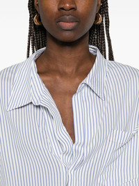 striped shirt Highlights - Blue - Front button fastening - Spread collar - Buttoned cuffs - Chest patch pocket Imported Composition viscose 69%, Linen/Flax 31% SIZE & FIT Model measurements Height 5 ft 11 in(1.8 m) Bust/Chest 32.67 in(83 cm) Hips 36.22 in(92 cm) Waist 24.4 in(62 cm) FittingInformation Designed to be unstructured, offering a loose fit throughout Made from a midweight non-stretch fabric