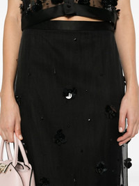 bead-embellished midi skirt Highlights - Black - Silk - Organza - All-over sequin and bead embellishment - Concealed side zip fastening - Satin trim - Full lining - Straight hem - Mid-length Imported Composition Silk 100%, Acetate 74%, Acrylic 40%, Polyester 40%, Polyamide 23%, glass 20%, Elastane 3% SIZE & FIT Model measurements Height 5 ft 10 in(1.78 m) Bust/Chest 33.85 in(86 cm) Hips 36.61 in(93 cm) Waist 26.77 in(68 cm) FittingInformation This midi-length skirt is intended to be worn just below the waist Made from a midweight fabric Washing instructions Dry Clean Only