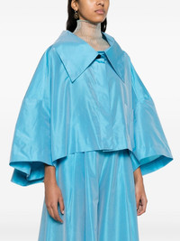 Extreme taffeta shirt jacket Highlights - Light blue - Taffeta - Pleat detailing to the rear - Oversized pointed collar - Concealed front button fastening - Drop shoulder - Batwing sleeves - Chest patch pocket - High-low hem - Cropped Imported Composition Polyester 60%, Silk 40% SIZE & FIT Model measurements Height 5 ft 9 in(1.76 m) Bust/Chest 31.1 in(79 cm) Hips 36.61 in(93 cm) Waist 24.8 in(63 cm) FittingInformation Designed for an oversized fit, offering additional room throughout Made from a lightweight non-stretch fabric This piece fits true to size – take your usual size Washing instructions Dry Clean Only
