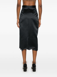 asymmetric-hem midi skirt Highlights - Black - Duchess satin weave - Asymmetric hem - Concealed side hook and zip fastening - Pencil silhouette - Rear slit - Full lining - Mid-length Imported Composition Polyester 100% SIZE & FIT Model measurements Height 5 ft 11 in(1.8 m) Bust/Chest 32.67 in(83 cm) Hips 35.82 in(91 cm) Waist 25.98 in(66 cm) FittingInformation This midi-length skirt is intended to be worn high on the waist Washing instructions Dry Clean Only
