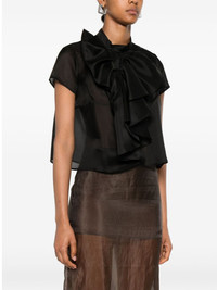 bow blouse Highlights - Black - Silk fabric - Bow detail - Ruffled overlay - Short sleeves Imported Composition Silk 100% SIZE & FIT Model measurements Height 5 ft 10 in(1.77 m) Bust/Chest 33.07 in(84 cm) Hips 37 in(94 cm) Waist 24.8 in(63 cm) FittingInformation Designed for a relaxed fit, this piece allows for comfort and movement when worn Washing instructions Dry Clean Only