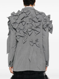 Bow Bouquet blazer Highlights - Anthracite grey - Wool - Bow detailing - Front button fastening - Notched lapels - Shoulder pads - Long sleeves - Buttoned cuffs - Two front flap pockets - Straight hem - Logo-jacquard lining Imported Composition Wool 100% SIZE & FIT Model measurements Height 5 ft 9 in(1.76 m) Bust/Chest 31.88 in(81 cm) Hips 35.43 in(90 cm) Waist 24.8 in(63 cm) FittingInformation Designed for an oversized fit, offering additional room throughout The internal shoulder pads offer a structured shape This piece fits true to size – take your usual size Washing instructions Dry Clean Only