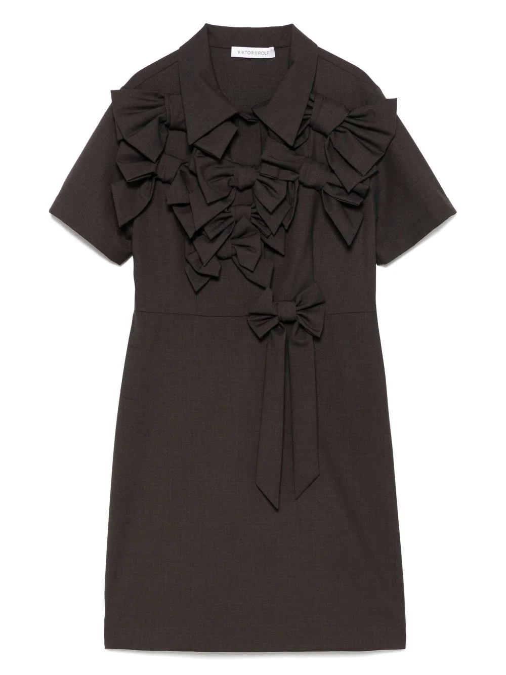 bow bouquet mini dress Highlights - Cedar brown - Concealed front button fastening - Polo collar - Short sleeves - Straight hem Imported Composition Wool 75%, Polyamide 23%, Elastane 2% SIZE & FIT Model measurements Height 5 ft 10 in(1.78 m) Bust/Chest 32.67 in(83 cm) Hips 35.43 in(90 cm) Waist 23.22 in(59 cm) FittingInformation Designed for a slim fit that sits just away from the body offering a close yet comfortable fit Made from a midweight fabric Washing instructions Dry Clean Only