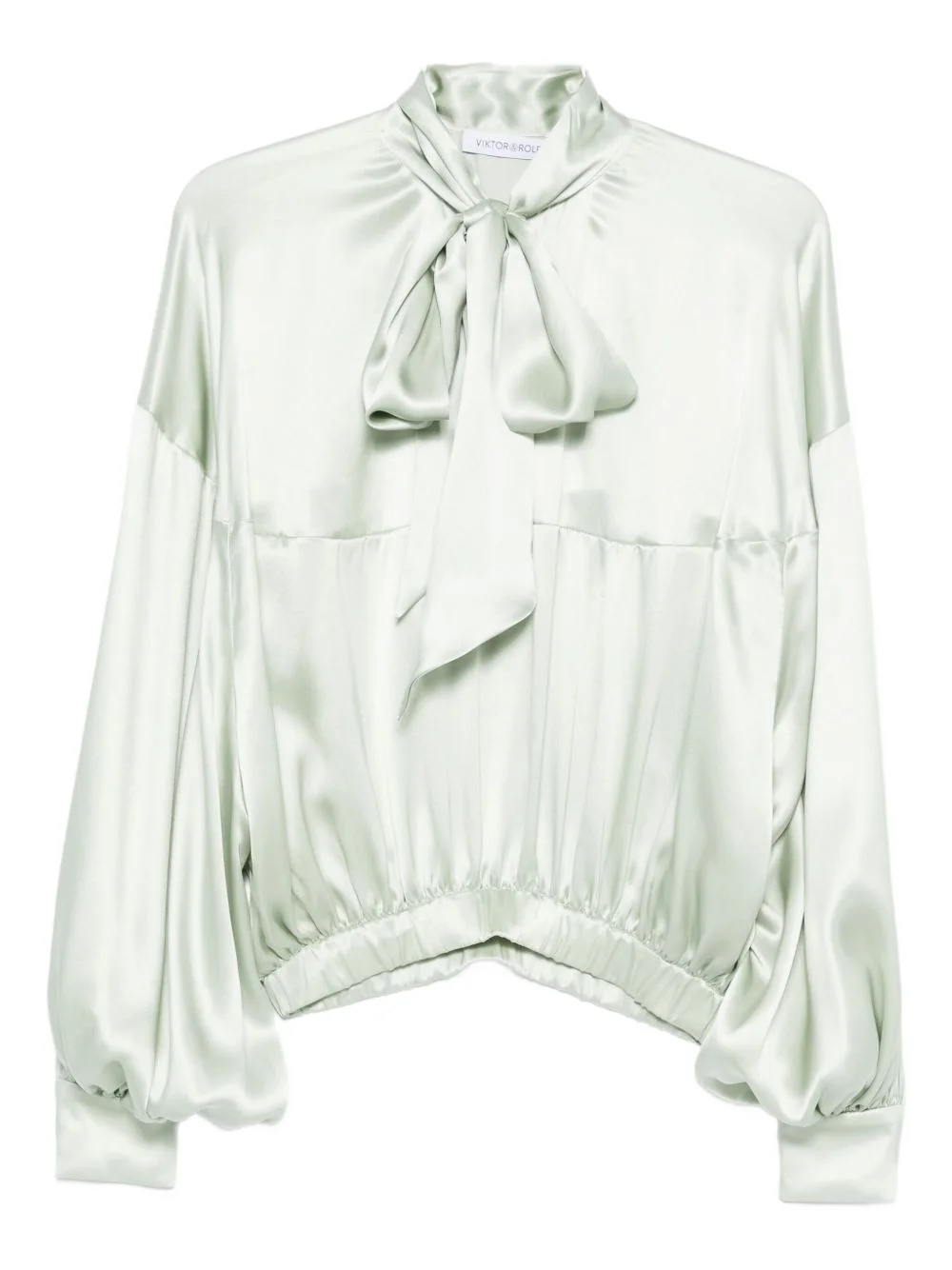 bow-detail balloon-sleeve silk blouse
