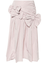 bow-detail draped skirt Highlights - Light pink - Recycled polyester - Taffeta - Oversize bow detail - Draped detailing - Pleat detailing - Concealed side hook and zip fastening - Mid-length - Flared hem - Unlined Imported Composition Recycled Polyester 100% SIZE & FIT Model measurements Height 5 ft 11 in(1.8 m) Bust/Chest 32.67 in(83 cm) Hips 36.22 in(92 cm) Waist 24.4 in(62 cm) FittingInformation This midi-length skirt is intended to be worn high on the waist Made from a midweight non-stretch fabric This piece fits true to size – take your usual size Washing instructions Dry Clean Only