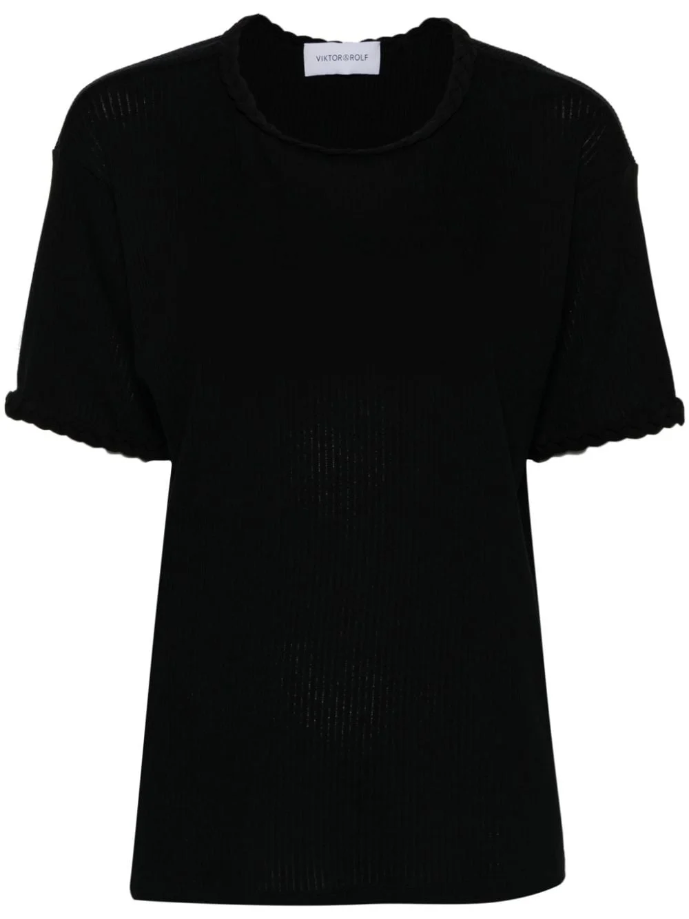 braid-detail cotton T-shirt Highlights - Black - Cotton - Braid detailing - Crew neck - Short sleeves Imported Composition Cotton 100% SIZE & FIT Model measurements Height 5 ft 11 in(1.8 m) Bust/Chest 31.49 in(80 cm) Hips 36.61 in(93 cm) Waist 24.4 in(62 cm) FittingInformation Designed for a relaxed fit, this piece allows for comfort and movement when worn Made from a midweight non-stretch fabric, this piece offers minimal elasticity when worn This piece fits true to size – take your usual size Washing instructions Dry Clean Only