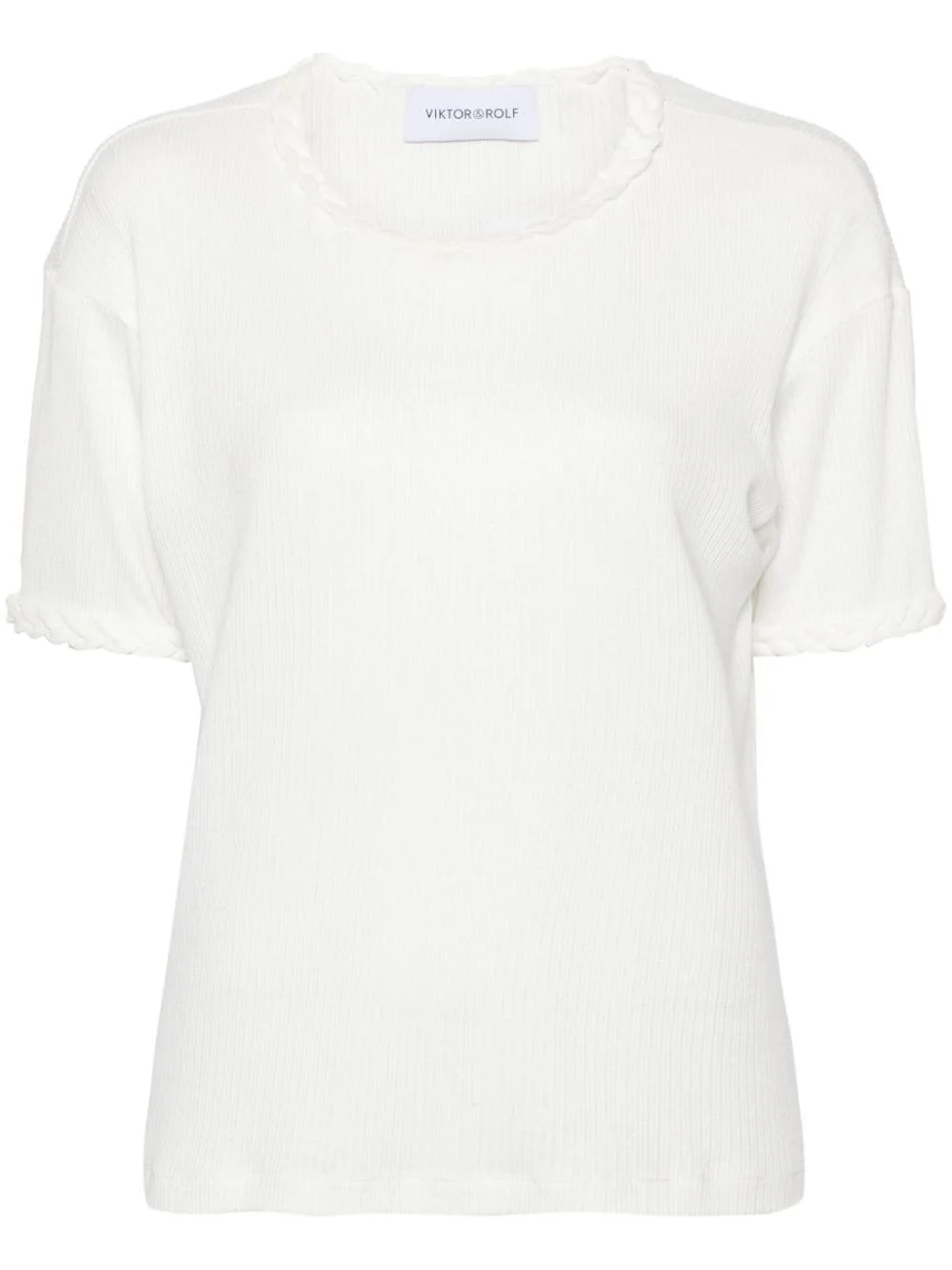 braid-detail cotton T-shirt Highlights - White - Cotton - Braid detailing - Crew neck - Short sleeves Imported Composition Cotton 100% SIZE & FIT Model measurements Height 5 ft 11 in(1.8 m) Bust/Chest 31.49 in(80 cm) Hips 36.61 in(93 cm) Waist 24.4 in(62 cm) FittingInformation Designed for a relaxed fit, this piece allows for comfort and movement when worn Made from a midweight non-stretch fabric, this piece offers minimal elasticity when worn This piece fits true to size – take your usual size Washing instructions Dry Clean Only
