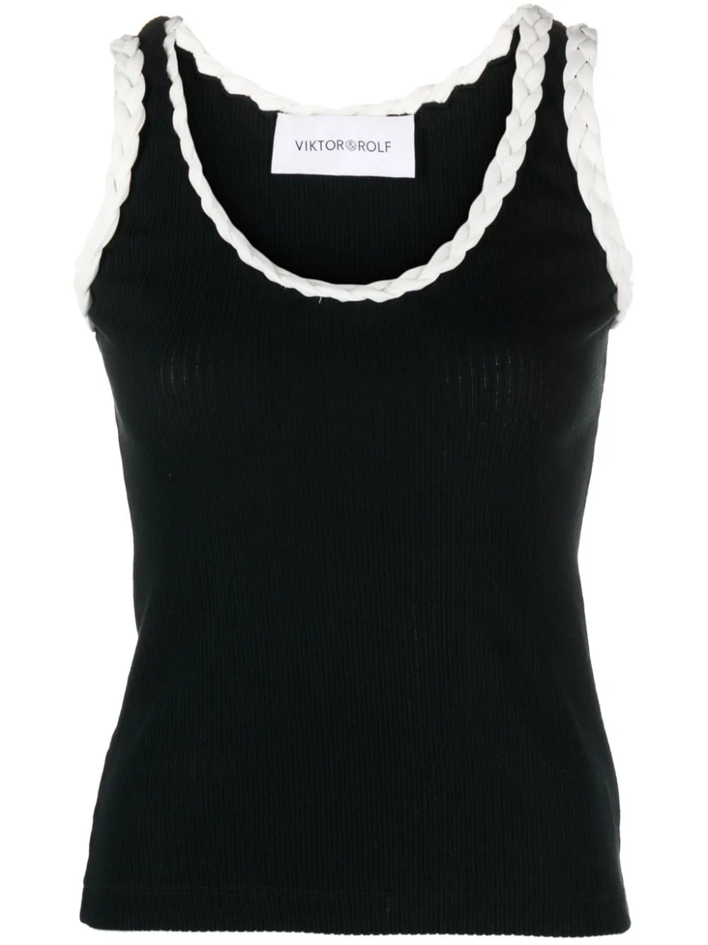 braid-detail cotton tank top Highlights - Black/white - Cotton - Jersey texture - Braid detailing - Scoop neck - Sleeveless - Straight hem Imported Composition Cotton 100% SIZE & FIT Model measurements Height 5 ft 10 in(1.79 m) Bust/Chest 32.67 in(83 cm) Hips 34.25 in(87 cm) Waist 24.4 in(62 cm) FittingInformation Designed for a close fit throughout Made from a midweight fabric This piece fits true to size – take your usual size Washing instructions Dry Clean Only