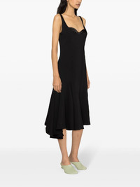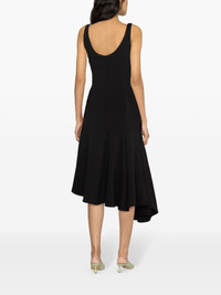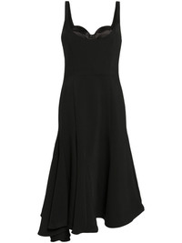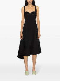 corset-style midi wool dress Highlights - Black - Godet design - Corset style - Boned bodice - Concealed rear zip fastening - Sleeveless - Scoop back - Fluted skirt - Asymmetric hem - Mid-length - Unlined Imported Composition Polyester 100% SIZE & FIT FittingInformation Designed for a close fit at the chest and waist with a loose fit at the hip The internal bodice offers support and shape Made from a midweight non-stretch fabric This piece fits true to size – take your usual size Washing instructions Dry Clean Only