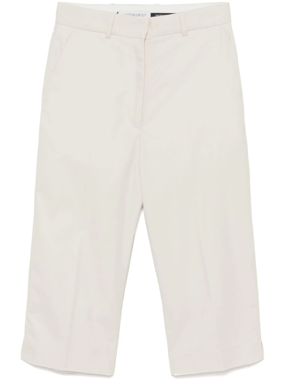 cropped trousers Highlights - Light beige - Cotton - Twill weave - Cropped leg - Concealed front button, hook and zip fastening - Belt loops - Two diagonal pockets to the sides - Pressed crease - Two rear welt pockets - Short side slits Imported Composition Cotton 100% SIZE & FIT Model measurements Height 5 ft 10 in(1.78 m) Bust/Chest 33.85 in(86 cm) Hips 36.61 in(93 cm) Waist 26.77 in(68 cm) FittingInformation Designed for a slim fit, these trousers offer a close fit at the waist, allowing a comfortable close fit and some movement over the leg Made from a midweight non-stretch fabric Washing instructions Dry Clean Only