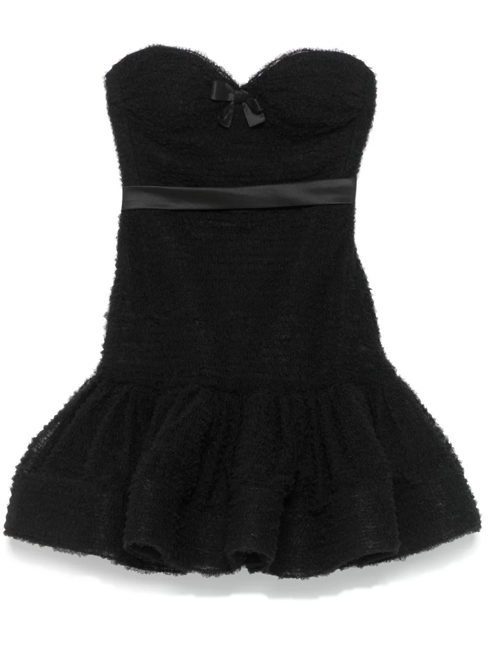 degrade tulle mini dress Highlights - Black - Tulle netting - Tiered effect - Concealed side zip fastening - Sweetheart neck - Strapless - Bow detailing - Fitted waistline - Full lining - Flared hem - Thigh-length Imported Composition Outer: Polyamide 100%, Polyester 69%, Silk 31% Lining: Cotton 100% SIZE & FIT FittingInformation Designed for a close fit throughout The moulded cups offer shape and support Made from a midweight non-stretch fabric Washing instructions Dry Clean Only