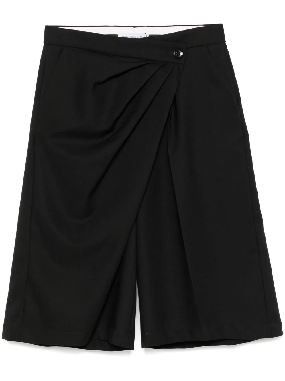 draped trousers Highlights - Black - Wool - Interlock weave - Draped detailing - Off-centre front fastening - Front button and zip fastening - Pleat detailing - Belt loops - Two diagonal pockets to the sides - Pressed crease - Two rear button-fastening jetted pockets Imported Composition Wool 100% SIZE & FIT FittingInformation Designed with a wide-leg cut, these trousers allow for a close fit at the waist and offer a loose and roomy fit over the leg Made from a midweight non-stretch fabric Washing instructions Dry Clean Only