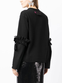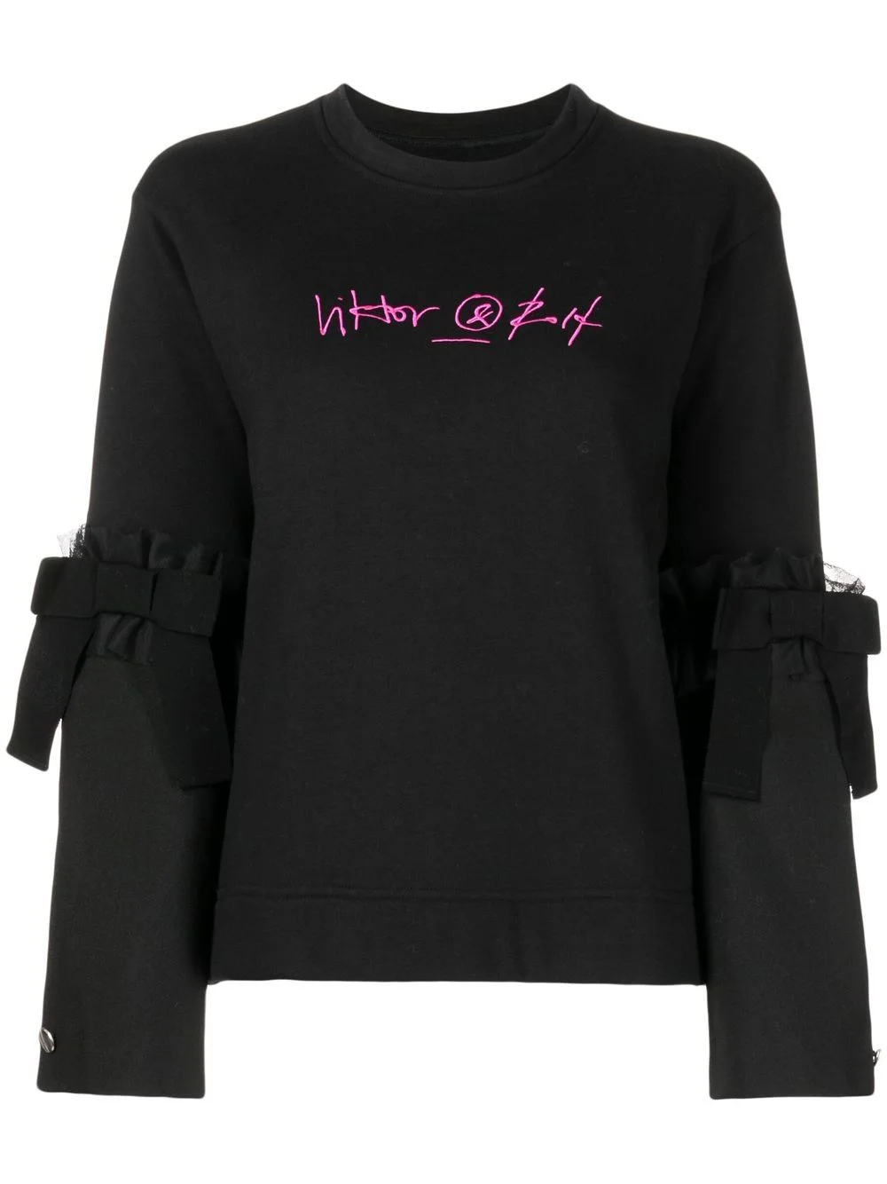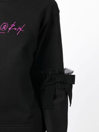 embroidered-logo detail sweatshirt jet black wool-cotton blend bow detailing embroidered logo to the front round neck long sleeves straight hem Imported Composition Body: Cotton 55%, Polyester 25%, Wool 15%, Other Materials 5% SIZE & FIT Model measurements Height 5 ft 11 in(1.8 m) Bust/Chest 28.34 in(72 cm) Hips 35.43 in(90 cm) Waist 23.62 in(60 cm) FittingInformation This piece fits true to size. We recommend you get your regular size Cut for a loose fit Made with a mid-weight fabric Washing instructions Dry Clean Only
