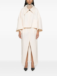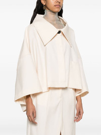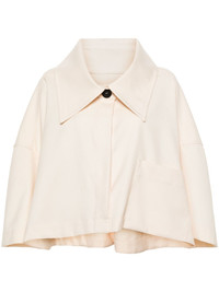 Extreme gabardine shirt jacket Highlights - Ecru - Gabardine weave - Pleat detailing to the rear - Oversized pointed collar - Concealed front button fastening - Drop shoulder - Batwing sleeves - Chest patch pocket - High-low hem - Cropped Imported Composition Nylon 65%, Cotton 30%, Other fibres 5% SIZE & FIT Model measurements Height 5 ft 9 in(1.76 m) Bust/Chest 31.1 in(79 cm) Hips 36.61 in(93 cm) Waist 24.8 in(63 cm) FittingInformation Designed to be unstructured, offering a loose fit throughout Made from a midweight non-stretch fabric This piece fits true to size – take your usual size Washing instructions Dry Clean Only