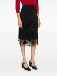 floral embroidery midi skirt Highlights - Black - Recycled polyester - Layered design - Floral applique - High-waisted - Mid-length Imported Composition Recycled Polyester 100% SIZE & FIT FittingInformation This midi-length skirt is intended to be worn just below the waist This piece fits true to size – take your usual size Washing instructions Dry Clean Only