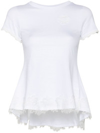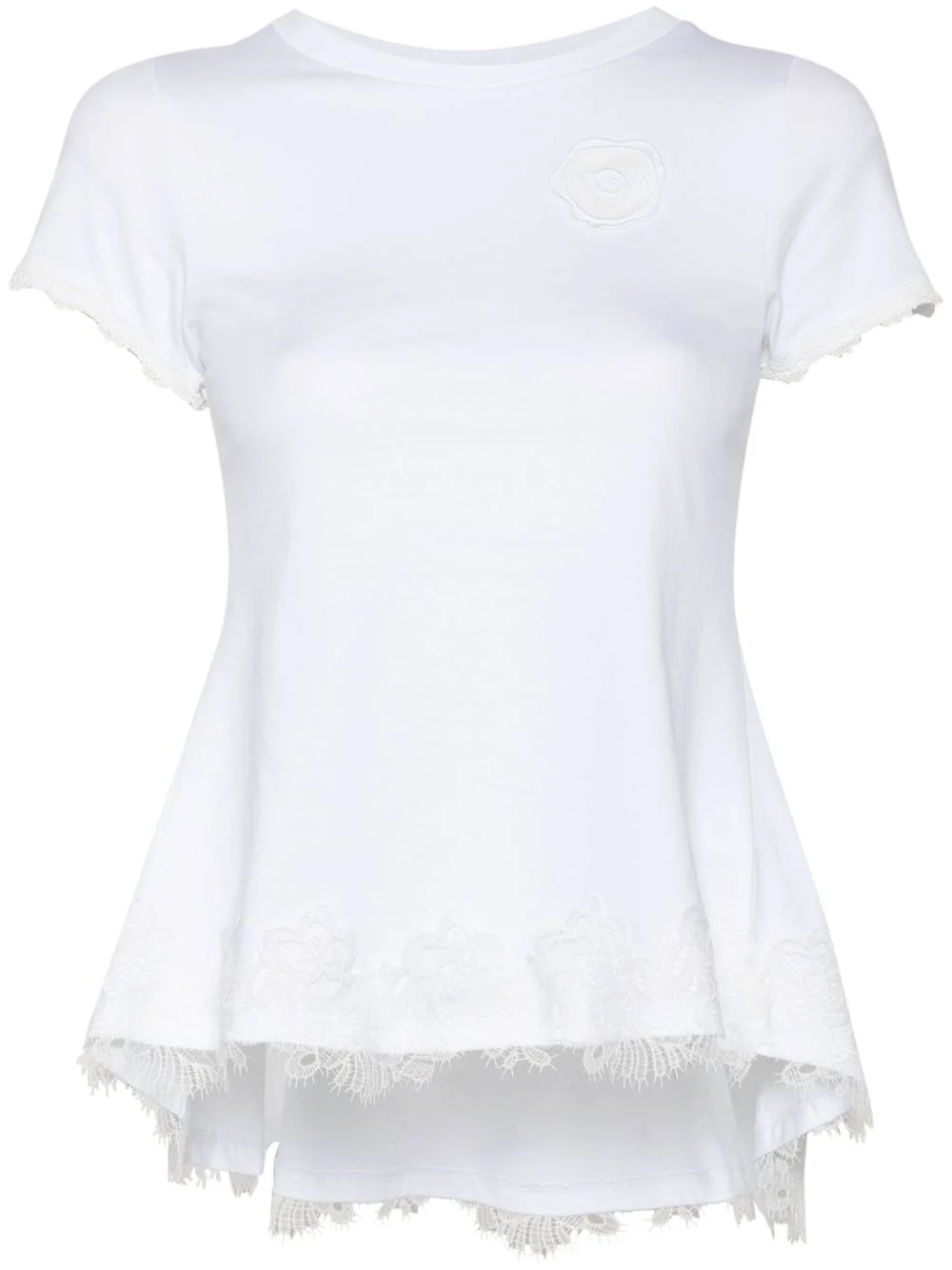 Godet T-shirt Highlights - White - Organic cotton - Applique logo - Floral-lace detailing - Crew neck - Short sleeves - Curved hem Imported Composition Organic Cotton 100% SIZE & FIT Model measurements Height 5 ft 11 in(1.8 m) Bust/Chest 32.67 in(83 cm) Hips 35.82 in(91 cm) Waist 25.98 in(66 cm) FittingInformation Designed for a slim fit that sits just away from the body offering a close yet comfortable fit Made from a midweight non-stretch fabric, this piece offers minimal elasticity when worn This piece fits true to size – take your usual size Washing instructions Machine Wash