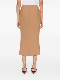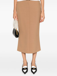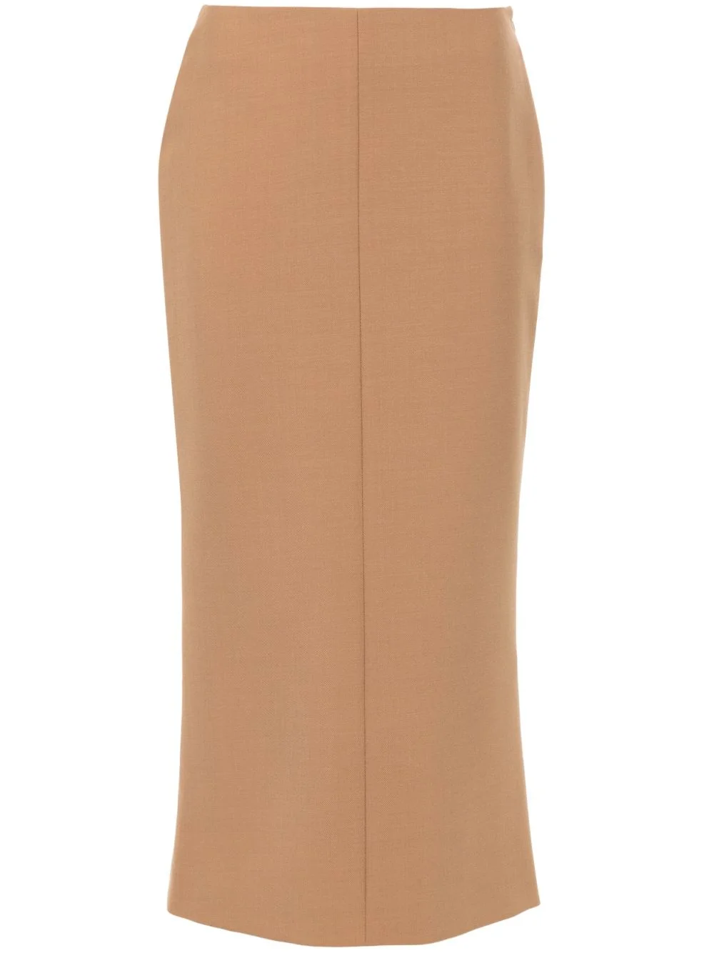 high-waisted midi pencil skirt Highlights - Brown - High-waisted - Concealed side zip fastening - Pencil silhouette - Central rear vent - Straight hem Imported Composition Polyester 52%, Wool 43%, Spandex/Elastane 5% SIZE & FIT Model measurements Height 5 ft 9 in(1.76 m) Bust/Chest 31.88 in(81 cm) Hips 35.43 in(90 cm) Waist 24.8 in(63 cm) FittingInformation This midi-length skirt is intended to be worn high on the waist The vented hem offers movement at the rear This piece fits true to size – take your usual size Washing instructions Dry Clean Only
