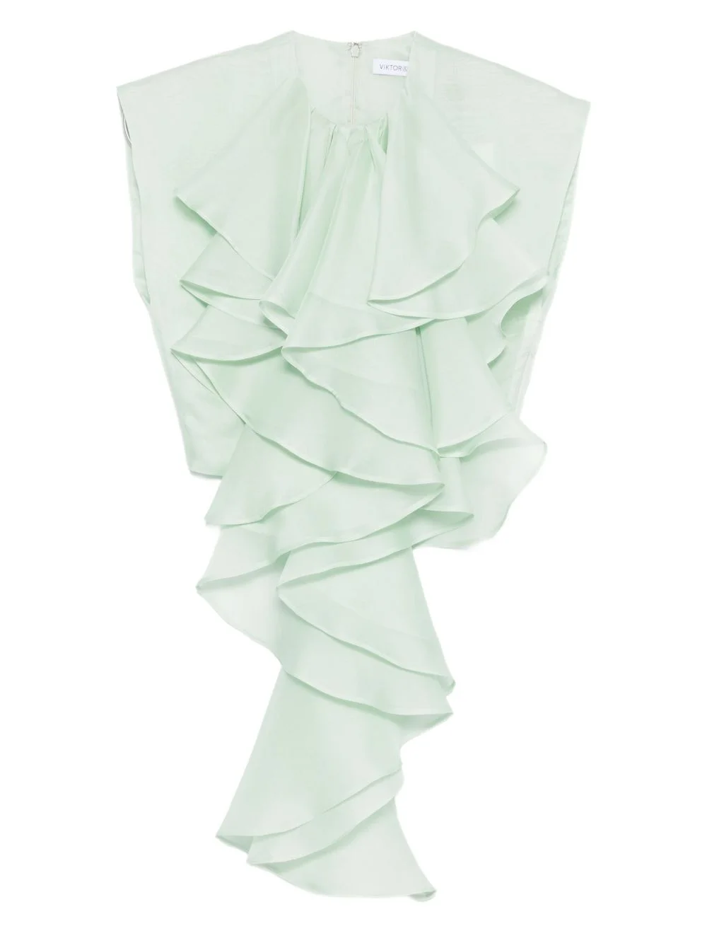 layered-ruffle silk top Highlights - Green - Silk - Asymmetrical ruffle detail - Sleeveless - Crew neck Imported Composition Silk 100% SIZE & FIT Model measurements Height 5 ft 10 in(1.77 m) Bust/Chest 33.07 in(84 cm) Hips 37 in(94 cm) Waist 24.8 in(63 cm) FittingInformation Designed for a slim fit that sits just away from the body offering a close yet comfortable fit Washing instructions Dry Clean Only
